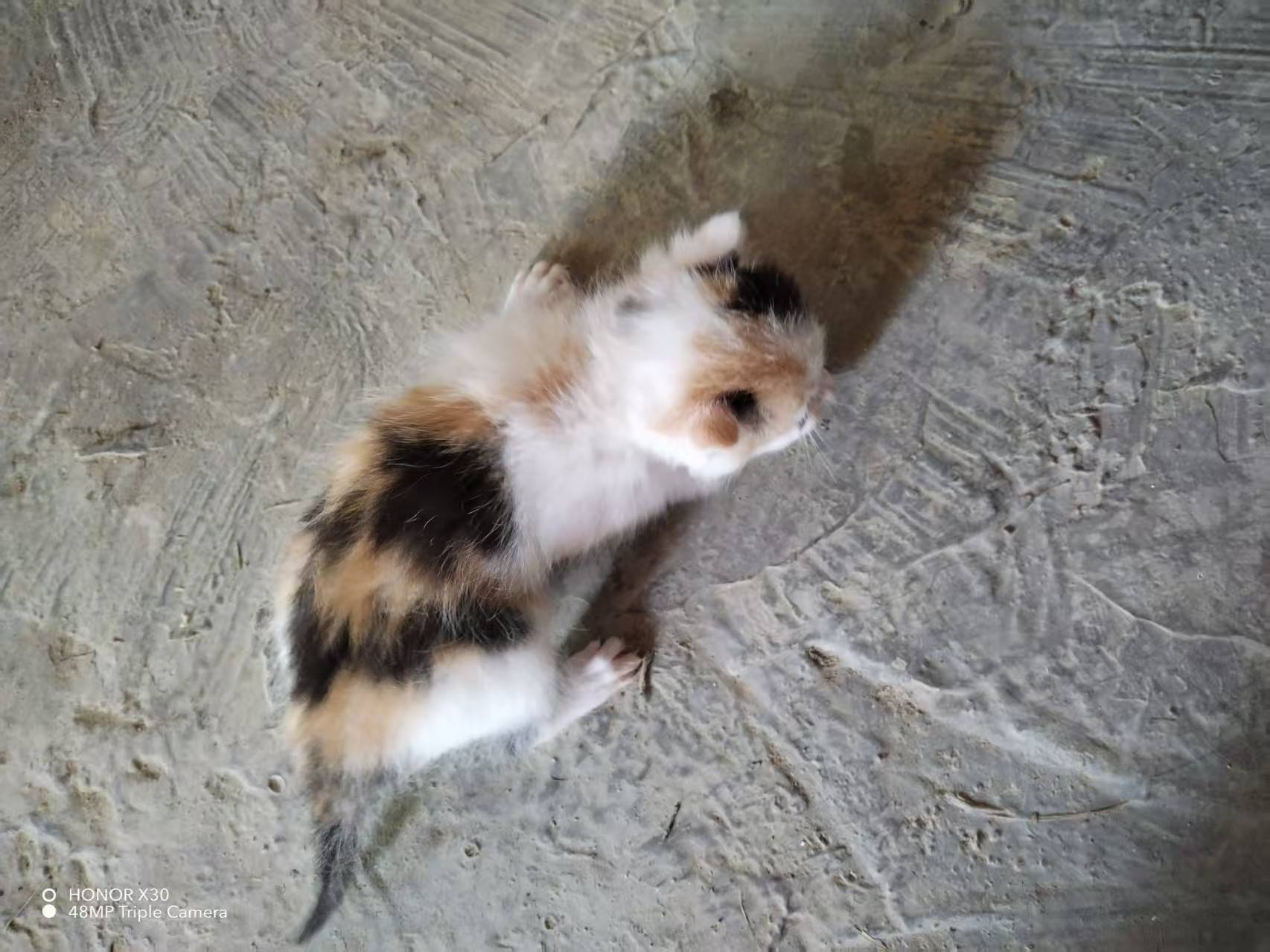 小奶猫目前不到一个月 希望找个好人家领养它 等它跟着猫妈妈稍微大一点就可以带走啦