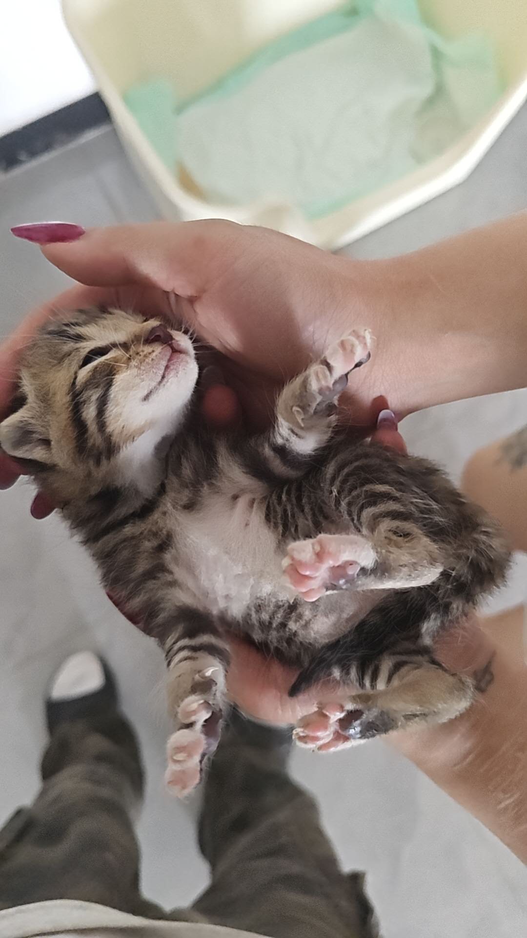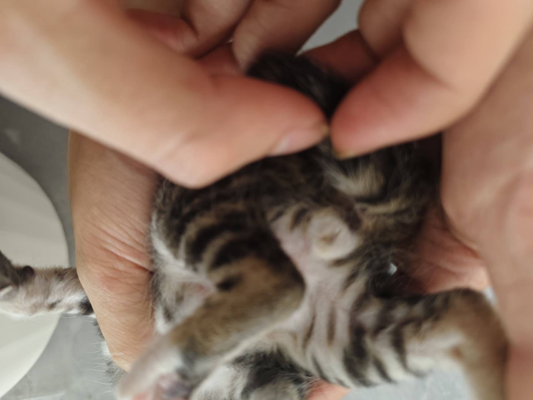 楼下扔垃圾捡到的小猫,在街上叫的很大声就带回来了估计只有一个星期左右,因为屋头已经有一只公猫了很排斥他,可以大点了再抱走低价出点奶粉钱🥛
