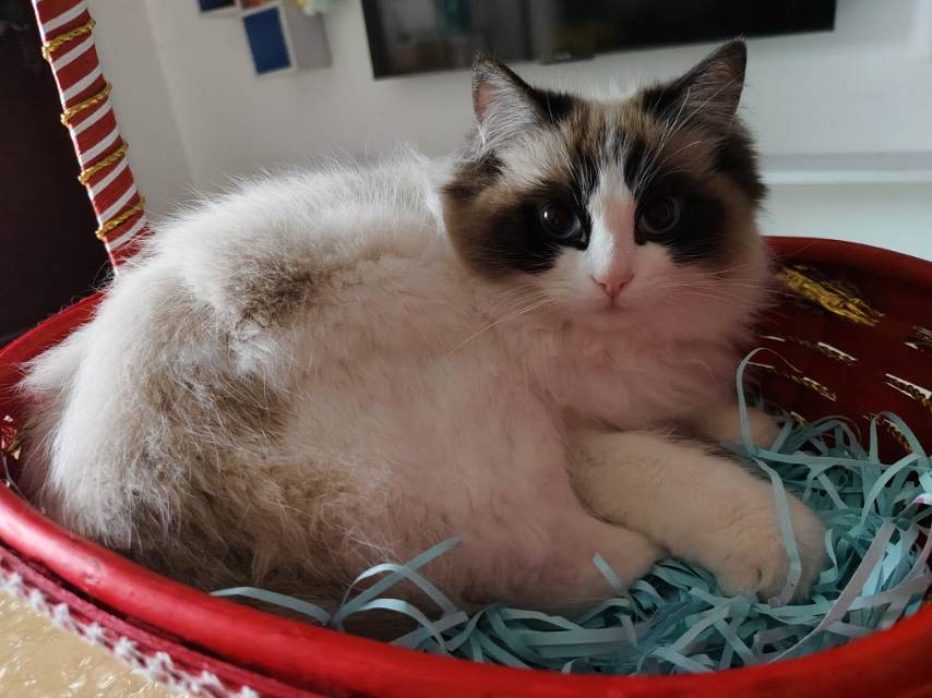 纯布偶妹妹十个月了,很漂亮,因为个人工作原因,找个爱它的新主人。红包价,可以送猫用品