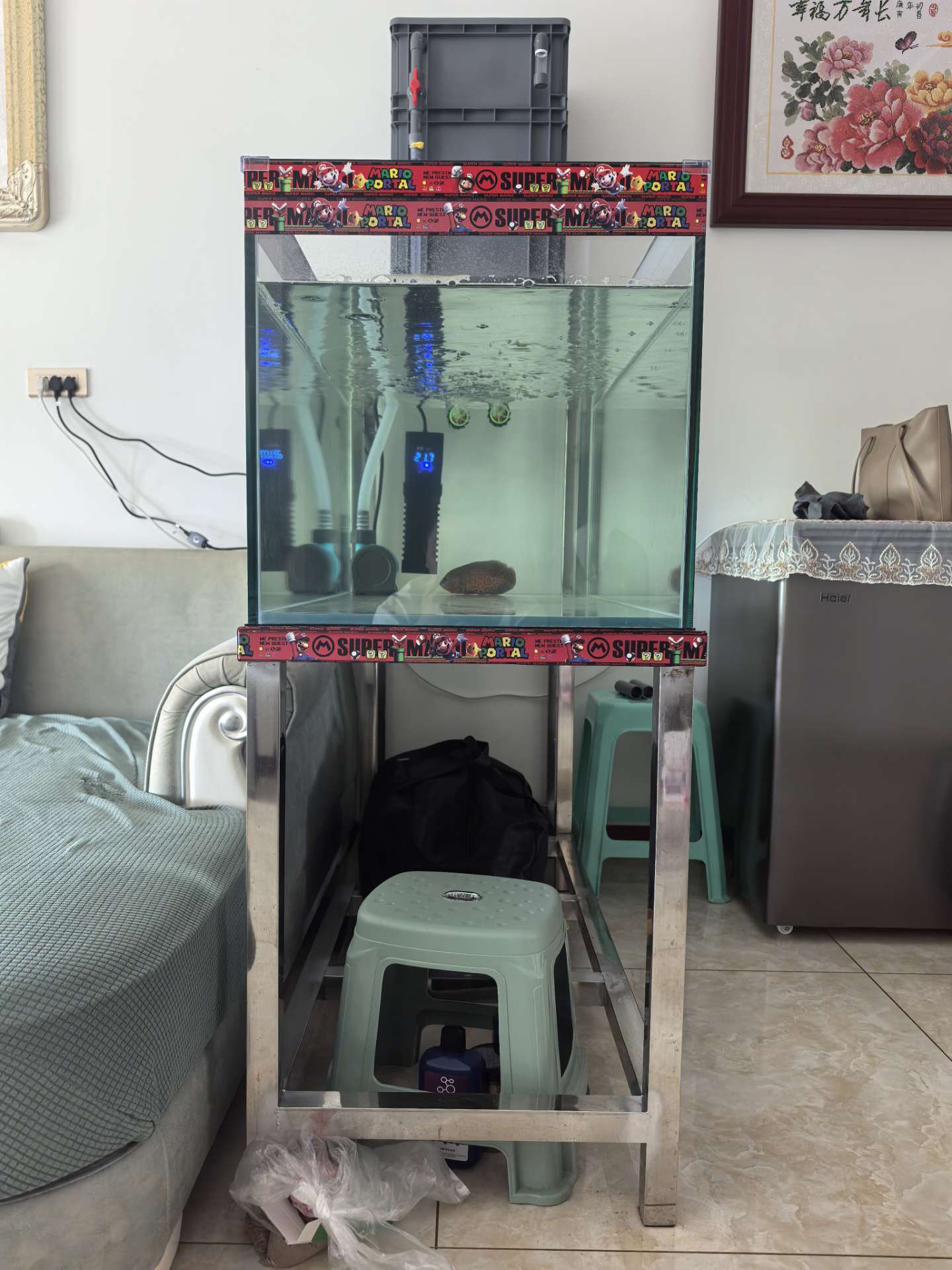 因需要换更大的鱼缸腾地方,故出此鱼缸,只出鱼缸跟鱼缸架一口价600,全部玻璃都是金晶五线超白玻璃,胶水用的德国瓦克121的胶水,尺寸是1200*500*500*12mm厚度的没用多久另外麦诺威有两块电池都是24000毫安的充电器遥控器配件齐全一口价850,全是卖价了不讲价了,要的联系